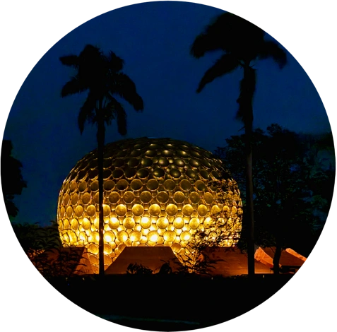 Seguimos hacia Pondicherry, un respiro junto al mar: cafés, callejuelas francesas y la serenidad del Ashram de Sri Aurobindo. Y en Auroville, culminamos con el silencio dorado del Matrimandir, espacio de unidad y visión interior.